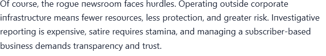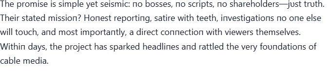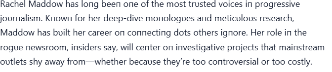 “NO BOSSES. NO SCRIPTS. JUST TRUTH — RACHEL MADDOW’S ROGUE NEWSROOM HAS ARRIVED ” LOW
