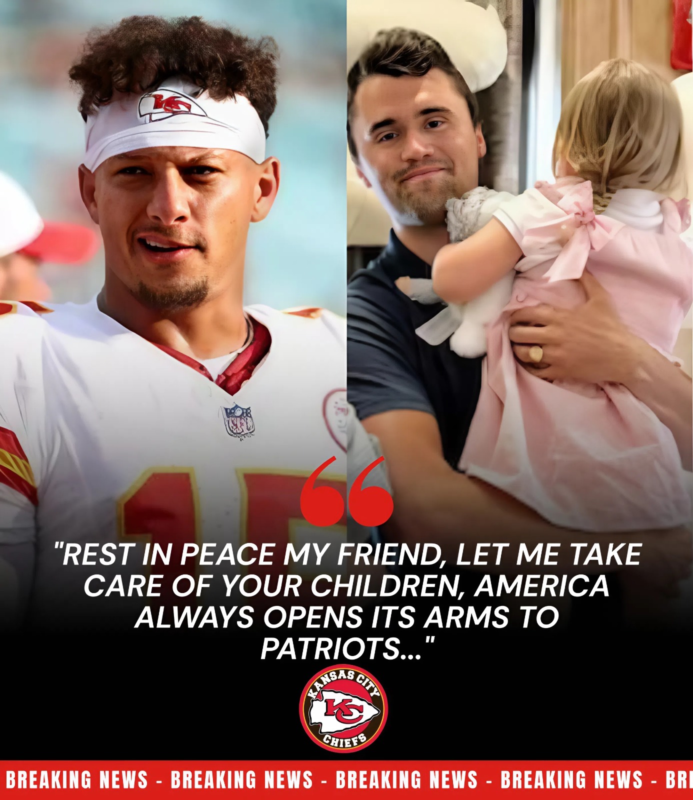 As America continues to mourn Charlie Kirk, Patrick Mahomes’s pledge will be remembered as a defining moment — one that transcends sports and highlights the power of empathy. In grief, he provided hope. In tragedy, he brought unity. And in doing so, he reminded the nation that heroes are not only found on the field, but also in the compassion they show when the world needs it most.